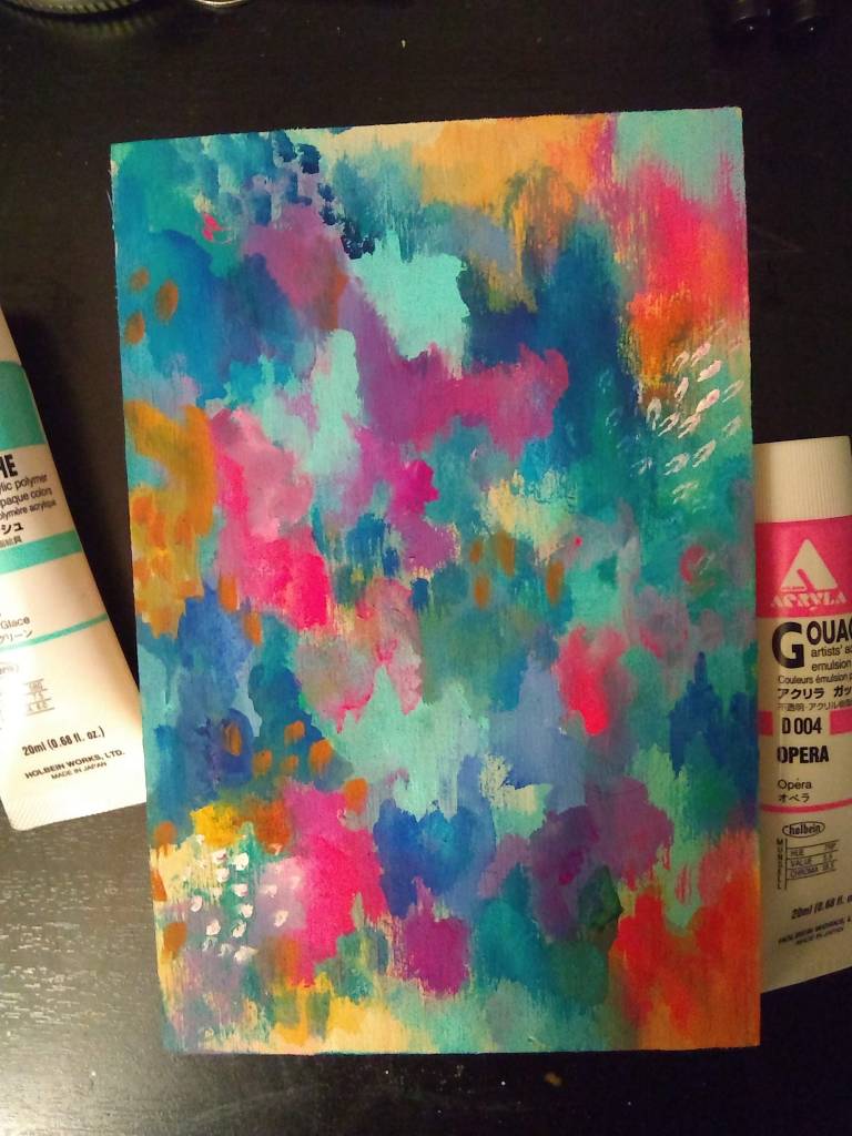 You can also see some photos below of the process of making this artwork – at the time I was testing out my (then) new Acryla gouache and decided to paint on a small 4×6 wood panel. I had no idea at the time that it would become not only one of my more popular prints but also the artwork that would make my dream of being licensed come true 🙂