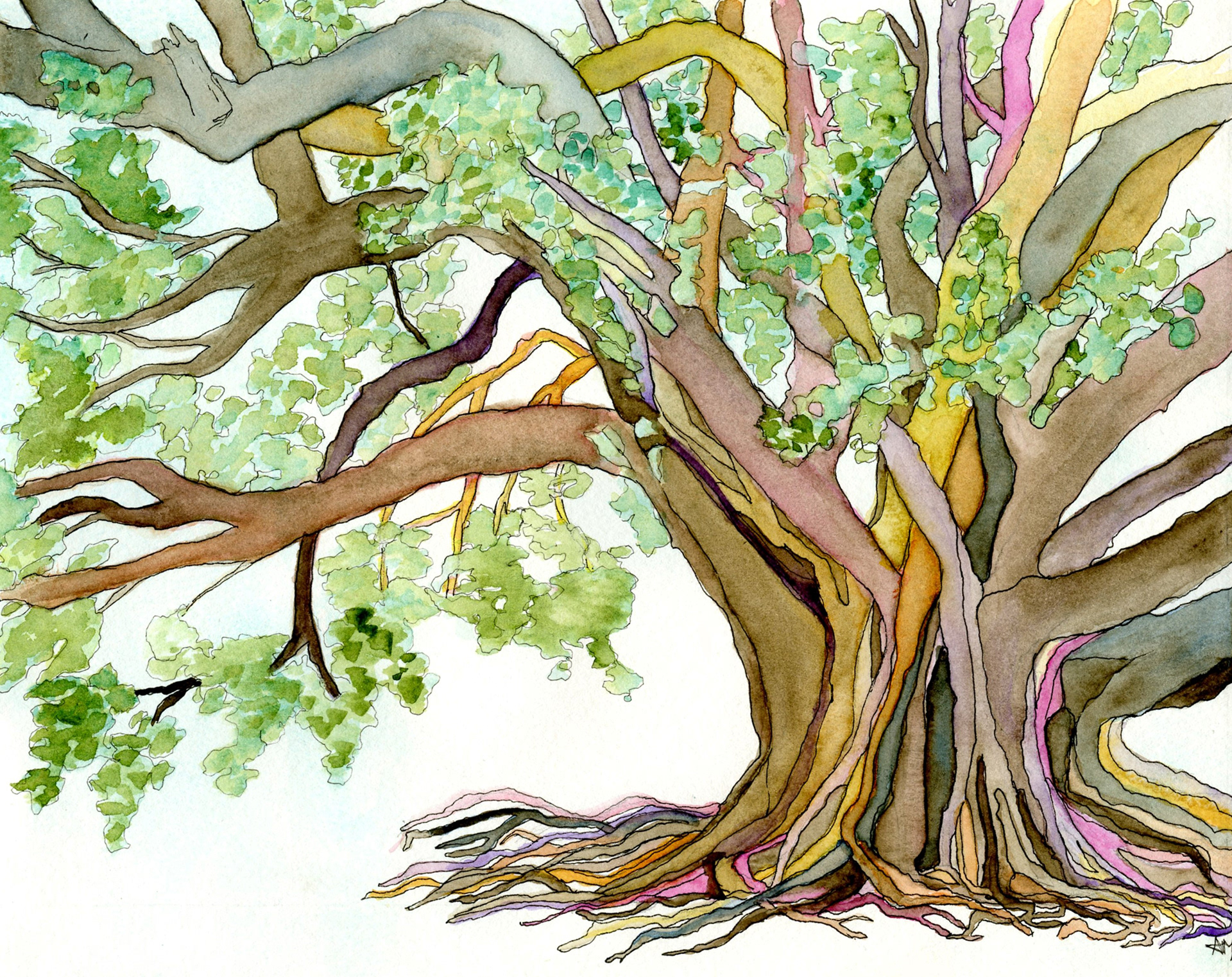 A beautiful Haitian ficus tree, painted in 2021, to raise money for Rayjon Share Care. The original was auctioned off and prints continue to be sold, with 20% of all proceeds going back to Rayjon.